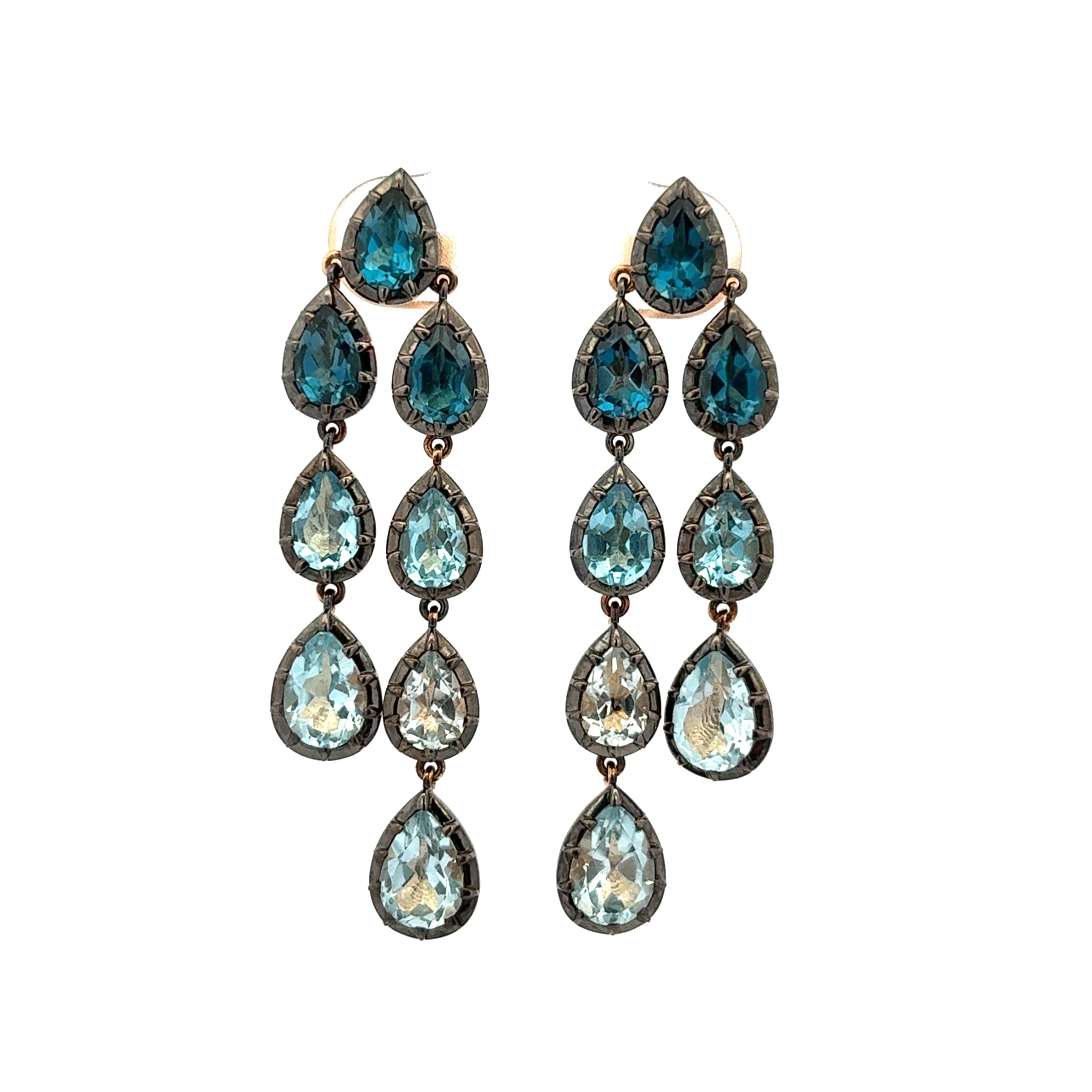 Blue Ombré Rhodium Hanging Earrings