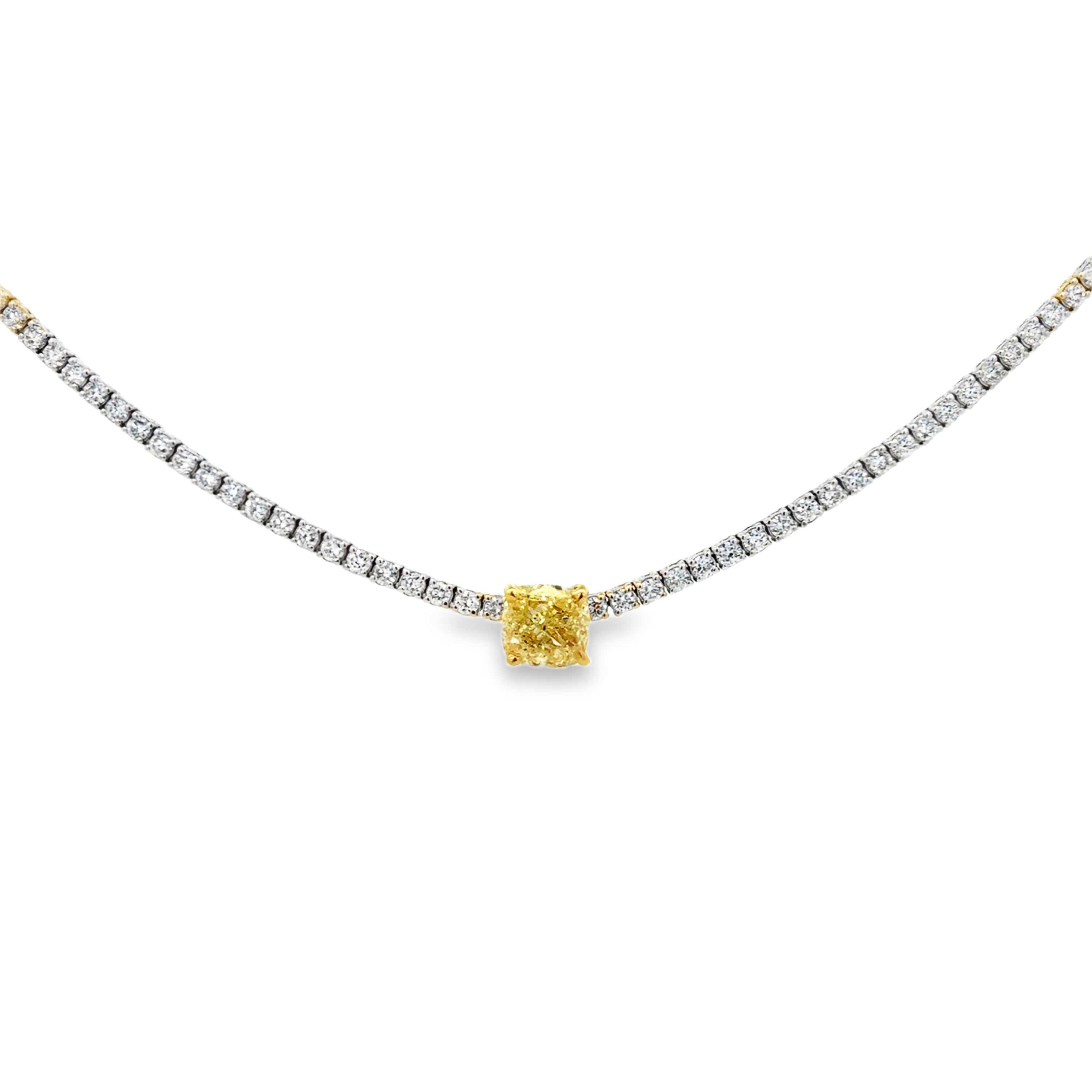 Tennis Necklace With Yellow Diamond Center