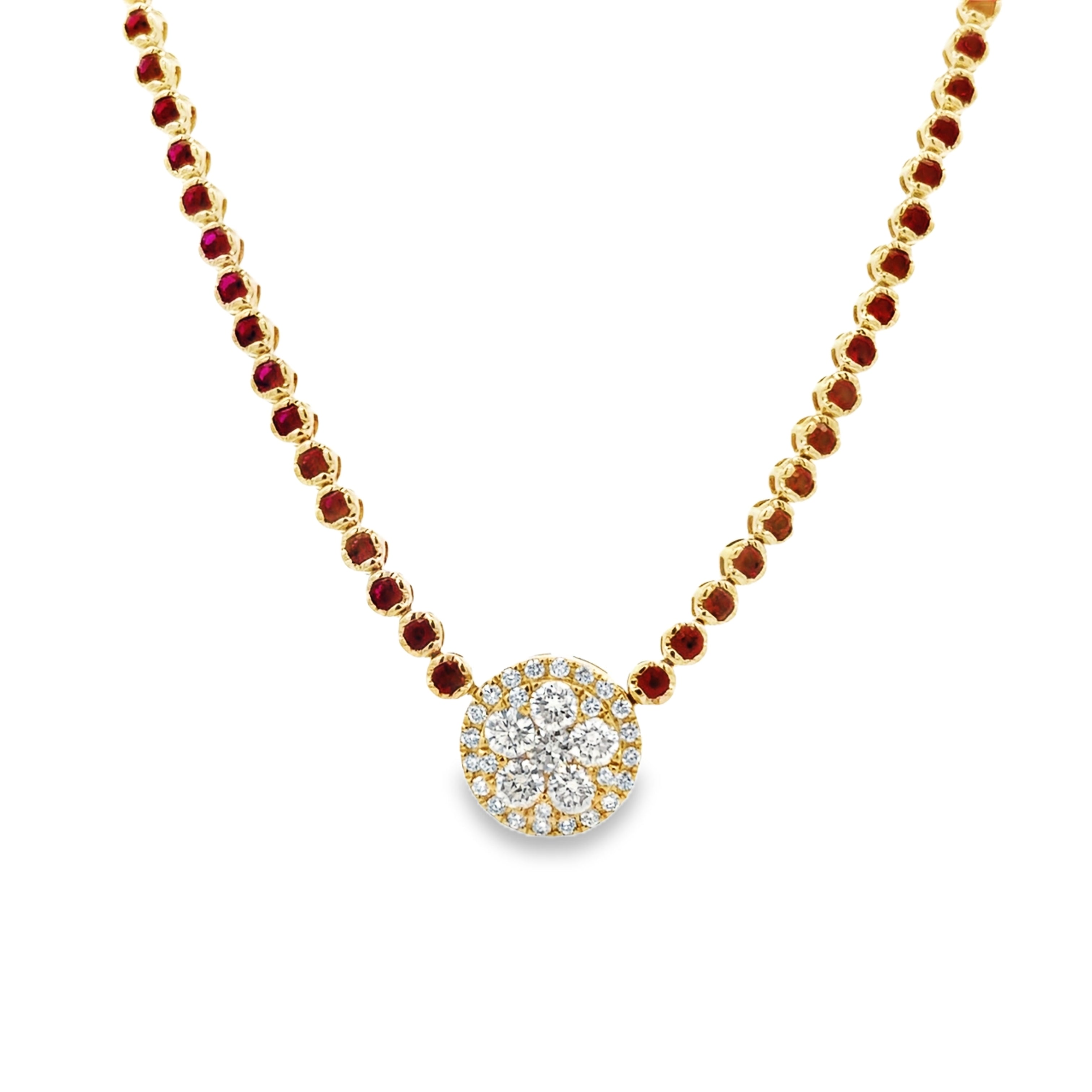Ruby Tennis Necklace With Round Center Diamond