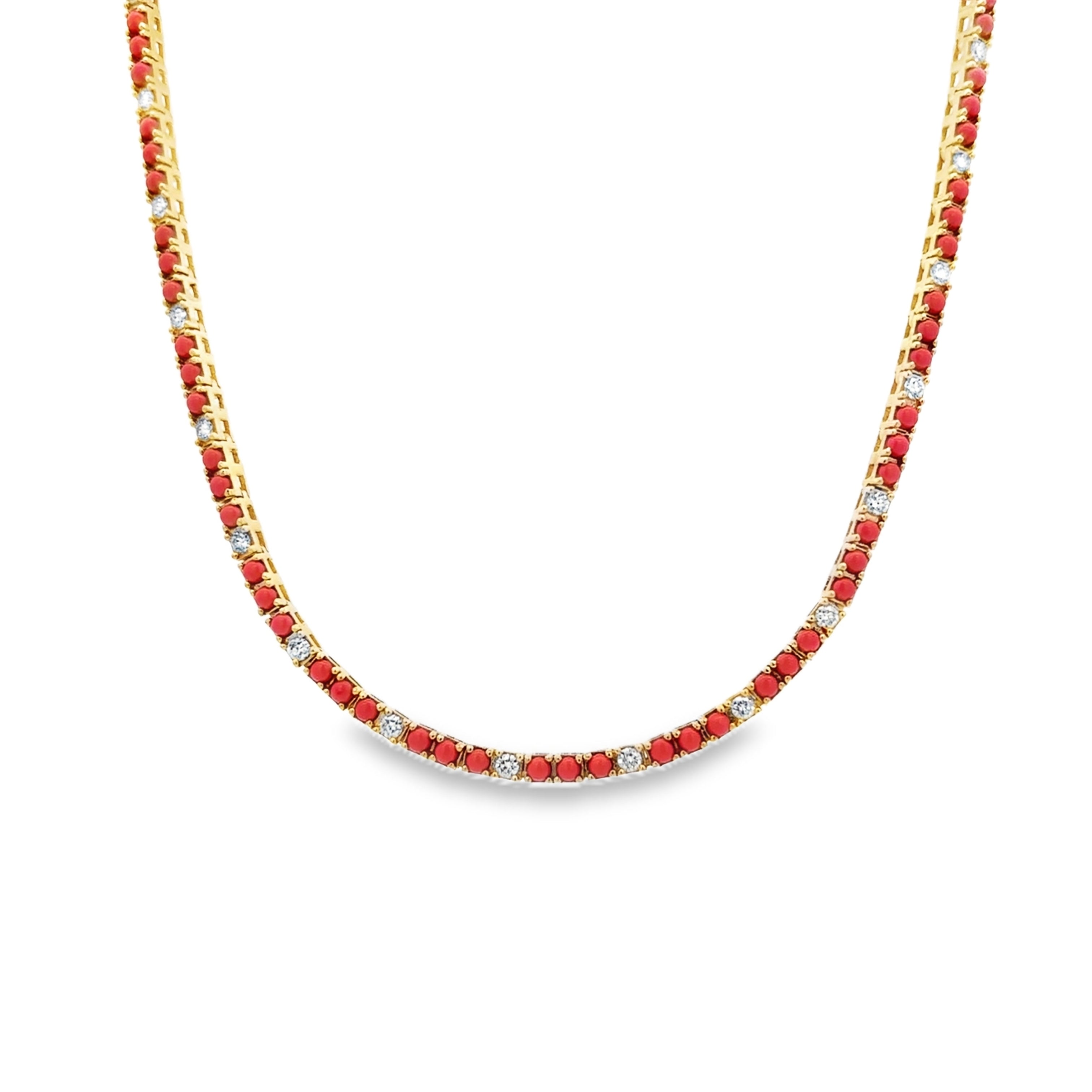 Coral and Diamond Tennis Necklace