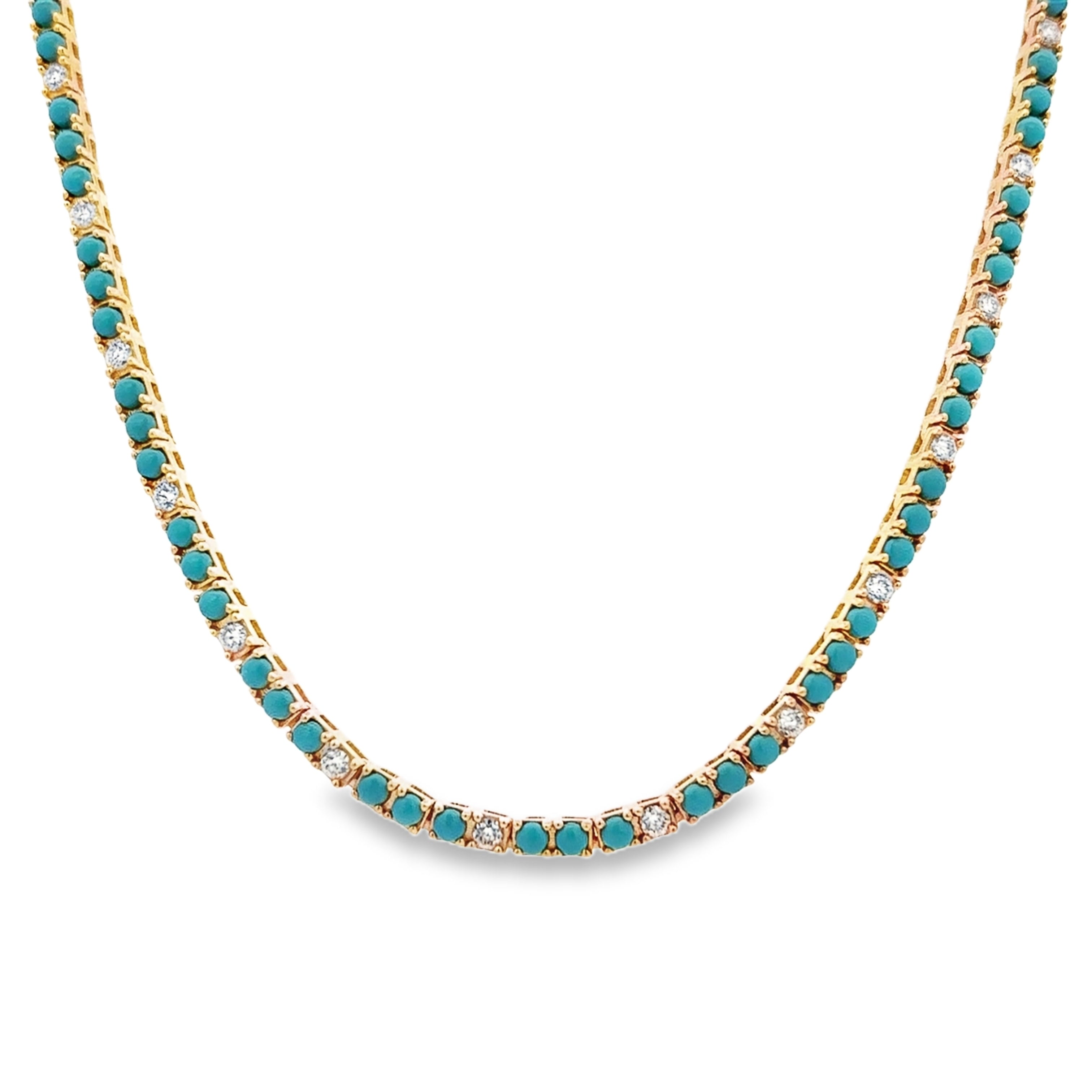 Turquoise and Diamond Tennis Necklace