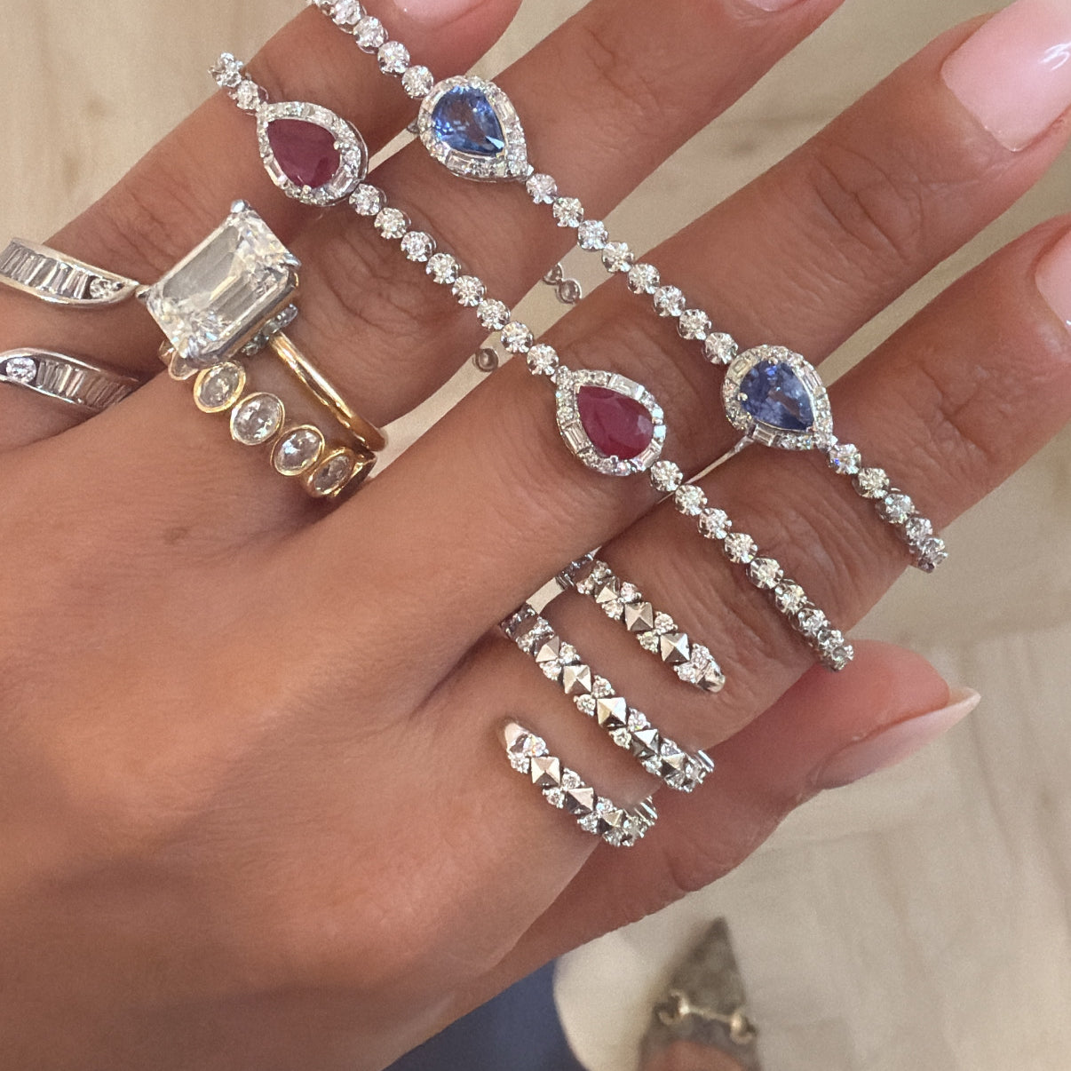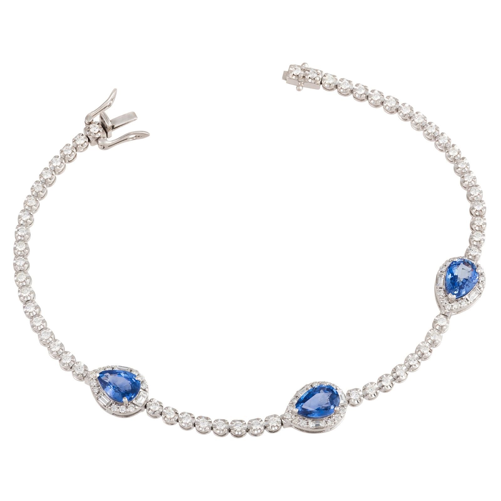 Diamond Tennis Bracelet with Blue Sapphire Pears