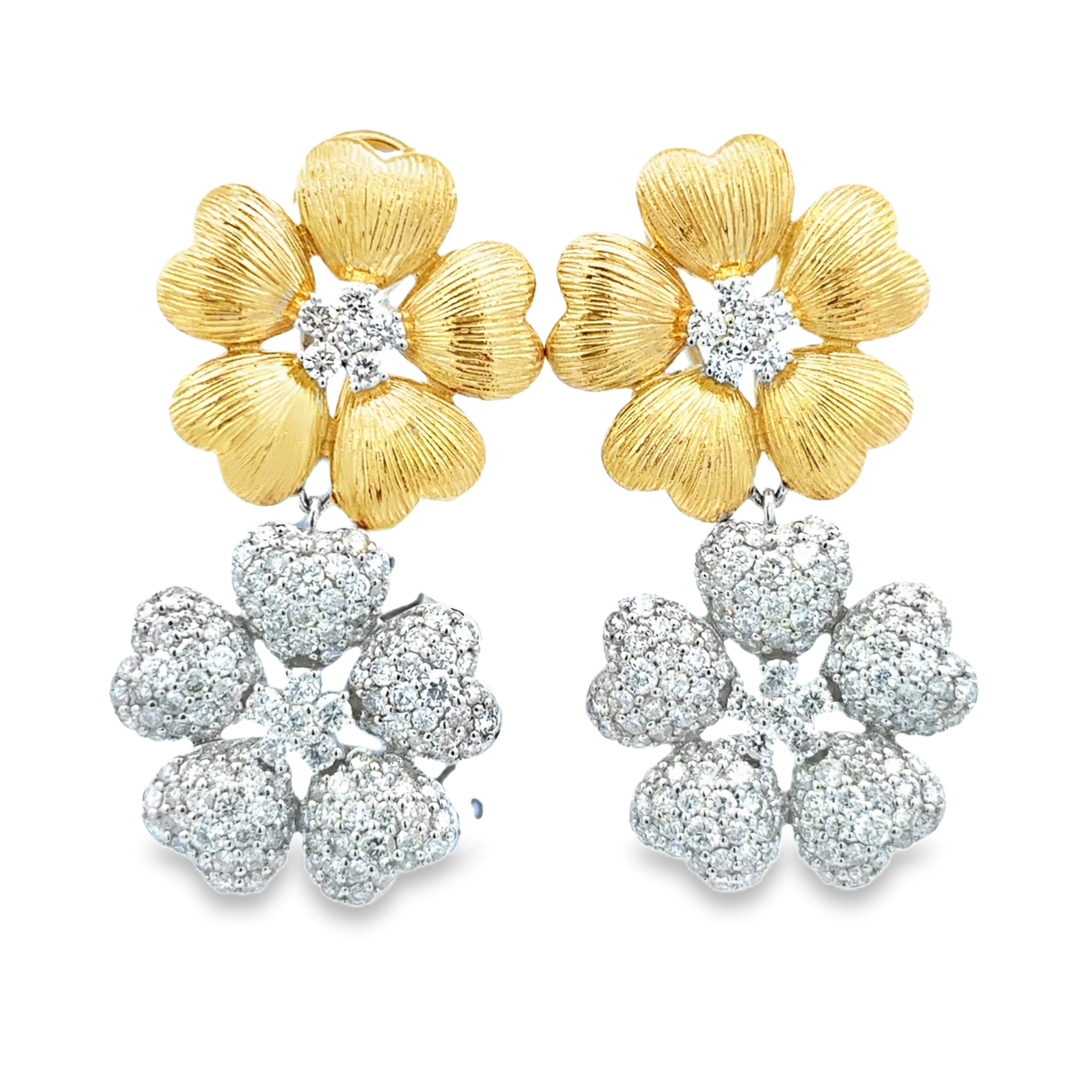 Brushed Gold & Diamond Flower Earrings