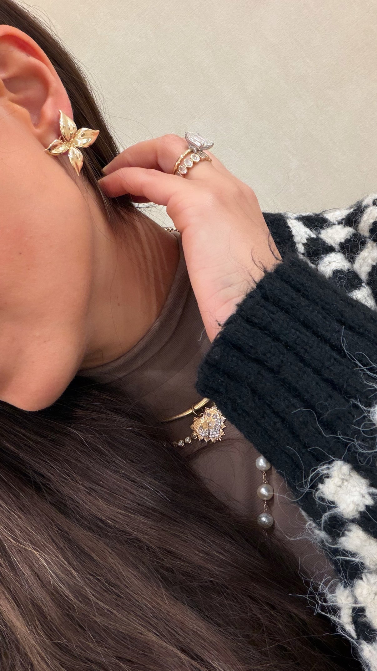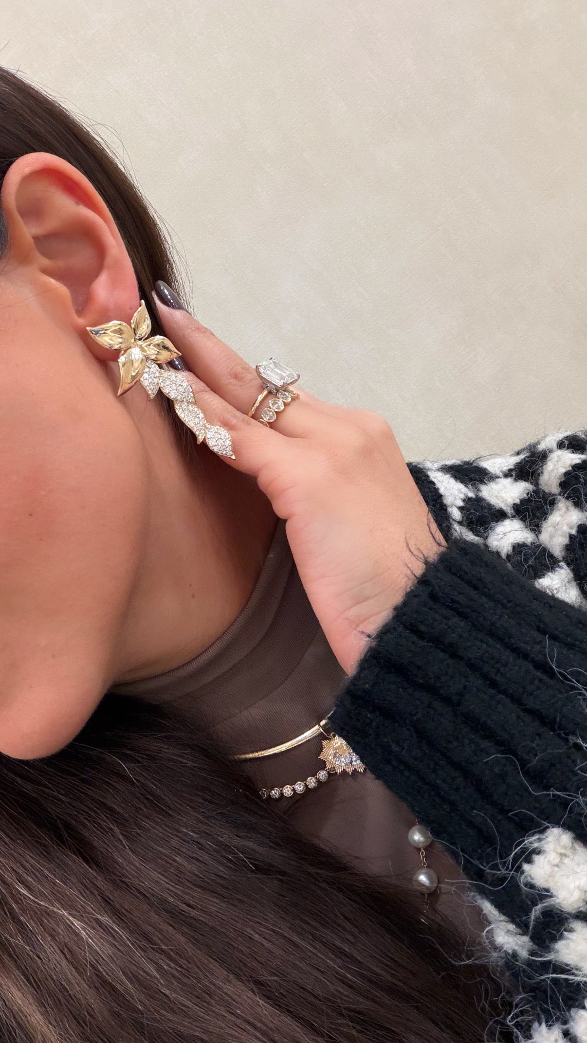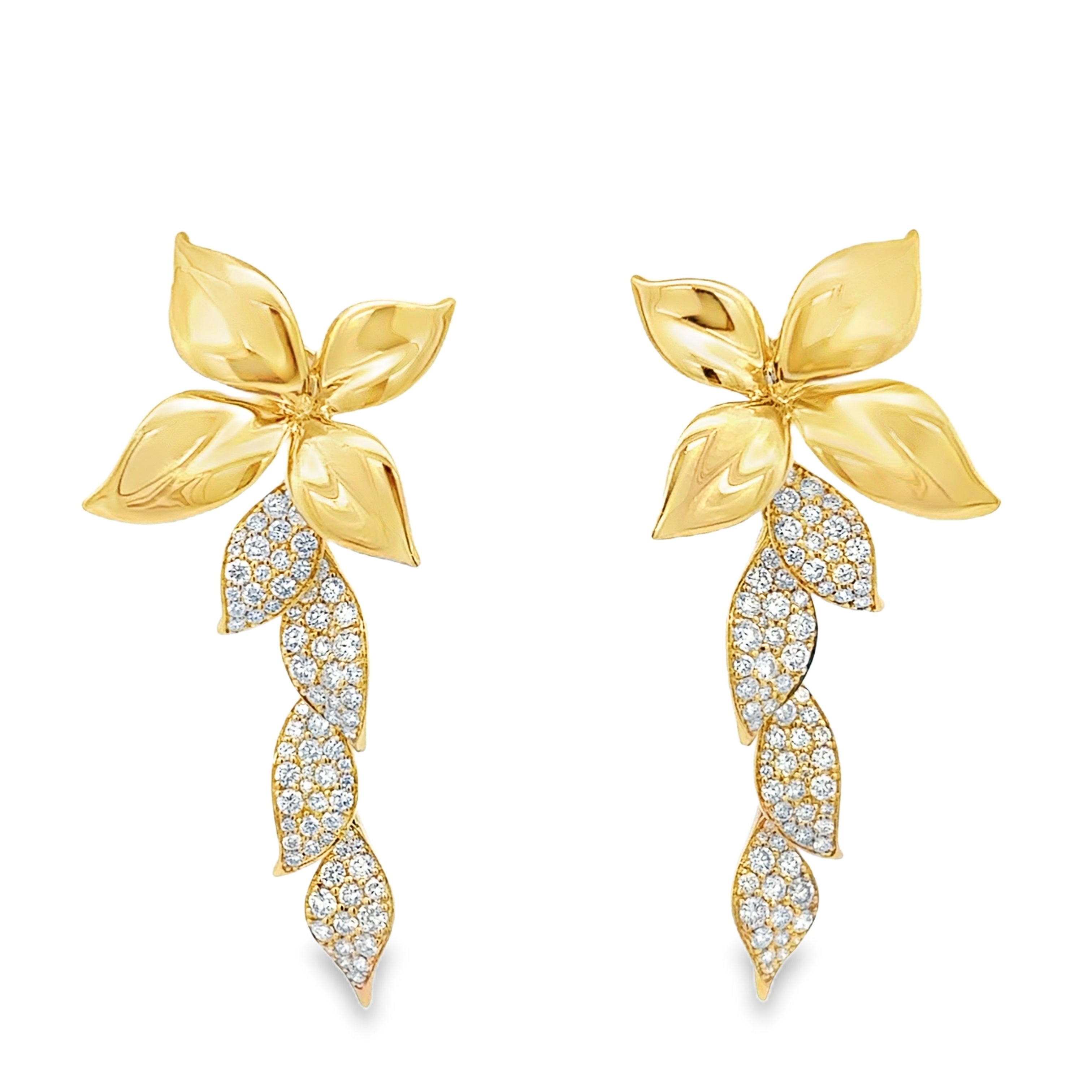 2 in 1 Flower & Diamond Hang Earrings